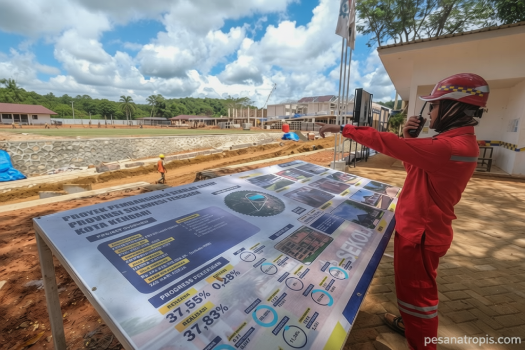 Bakal tampung 1 085 siswa Intip – Kamis (30/4/2026), tenaga konstruksi sedang memantau progres pengerjaan Sekolah Rakyat Tahap II Provinsi Sulawesi Tenggara di Kelurahan Abeli Dalam, Kota Kendari. Proyek ini dikerjakan oleh PT Brantas Abipraya (Persero) dan hingga saat ini telah mencapai 45,50 persen dari total target. Lokasi proyek berada di lahan seluas 6,8 hektare, yang diharapkan dapat menjadi pusat pendidikan baru bagi masyarakat sekitar.